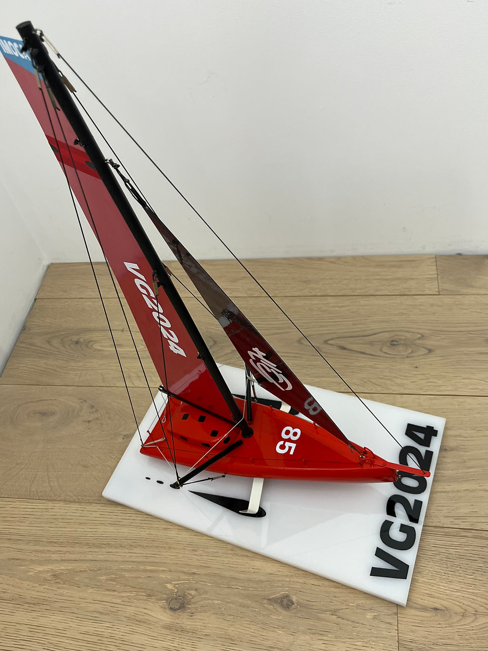 Nos voiliers d'exposition sont sculptés dans un bloc de bois, en général du balsa. L'intégralité de votre modèle est réalisé à la main dans notre atelier de la Sarthe. Ces bateaux ne sont pas des maquettes au sens propre du terme. Du fait de leur conception, vous retrouverez moins de détails que sur une maquette, d'où leur prix attractif.